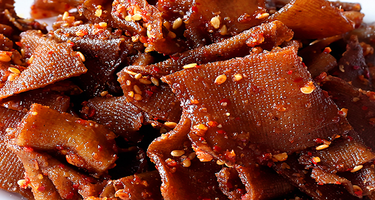平江醬干也叫長壽醬干,這道美食起源于岳陽市長壽街,是清咸豐年間的百歲老人何維豐首創(chuàng),經(jīng)過了18道加工工序,三鹵三烘制作而成,做出來的豆干烏黑油亮,充分吸收了鹵水的味道,紋路光滑,耐嚼爽口,有湘西獨有的醬香味。